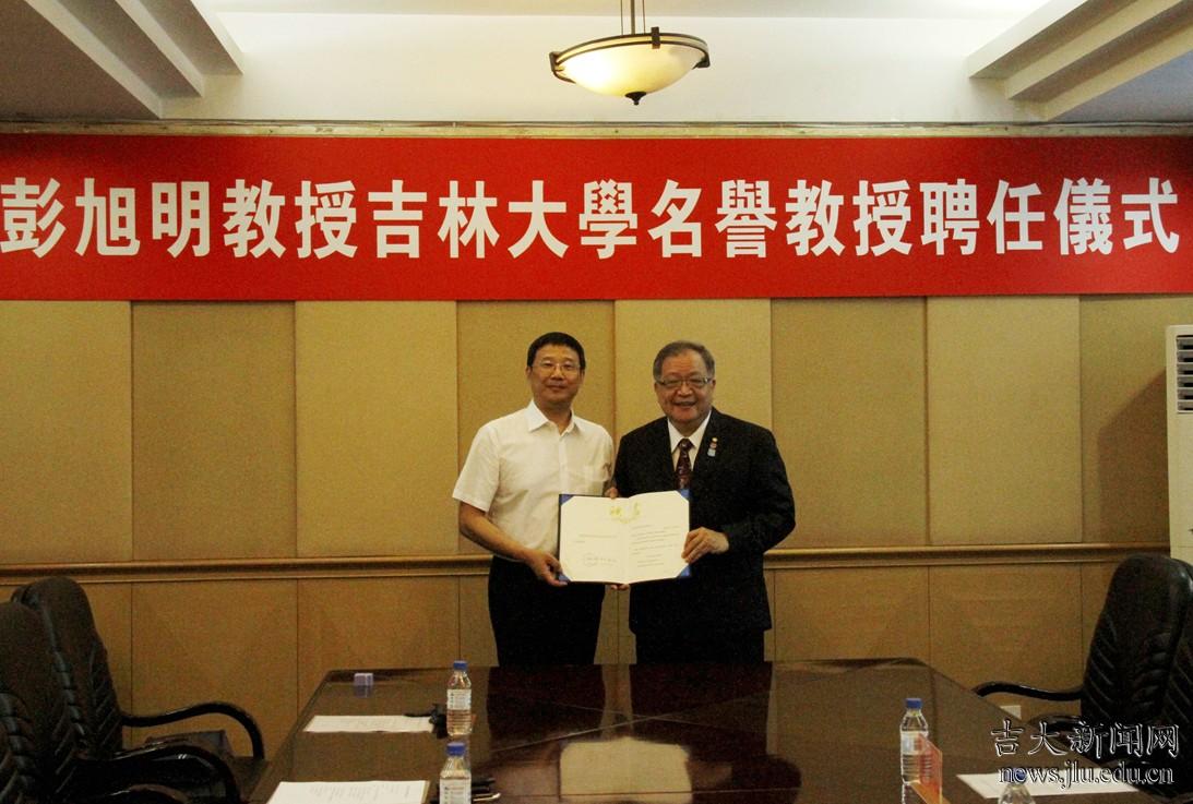彭旭明感谢吉林大学给予的殊荣,并表示作为吉林大学名誉教授,将努力推动两校在人员互访、科研合作和学生交流等领域的更深层次合作与交流。