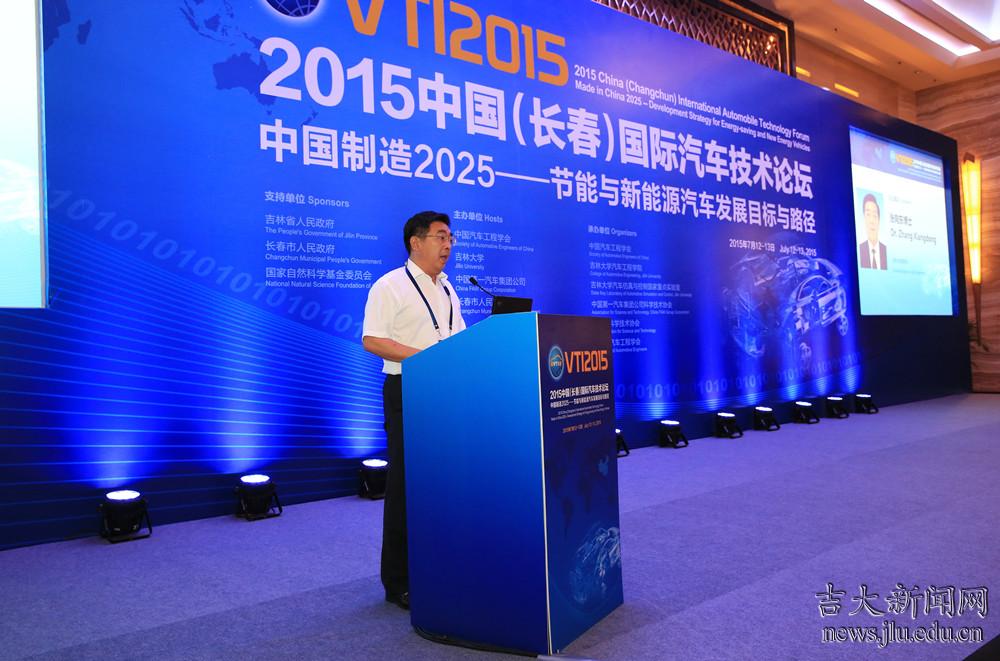 7月12日,由中国汽车工程学会、吉林大学、中国第一汽车集团公司、长春市人民政府共同主办的“2015中国(长春)国际汽车技术论坛(VTI2015)成功举行。本届论坛以“中国制造2025——节能与新能源汽车发展目标与路径”为主题,讨论了中国汽车工业转型升级、跨越发展的机遇问题。来自行业主管部门、高校、科研单位及企业的汽车领域近600位嘉宾参加了论坛活动。开幕式上,吉林大学副校长张向东、一汽集团副总经理吴绍明、长春市副市长桂广礼、中国汽车工程学会理事长付于武等分别致辞。
