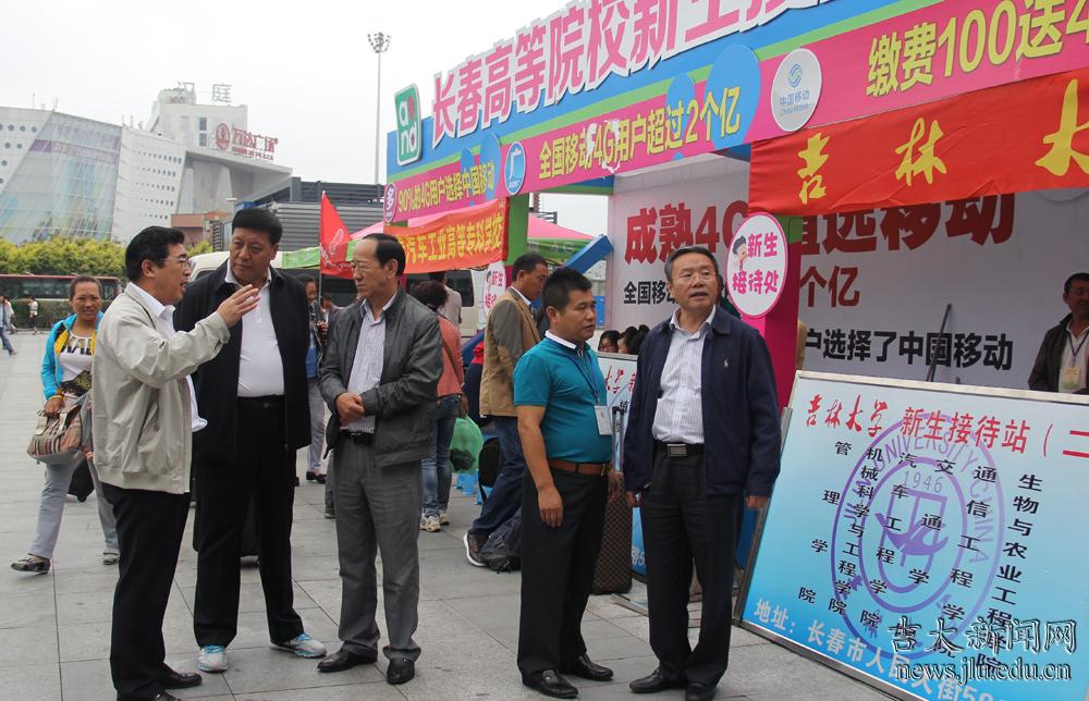 在此期间,校领导还检查了学校各项迎新工作情况。早晨8时许,学校党委副书记兼副校长韩晓峰、副校长张向东就前往长春站北广场检查吉林大学新生接待情况,并向志愿者表示慰问。与此同时,李元元视察了中心校区正在建设的教职工文化活动中心的施工情况,提出了具体整改建议,责成有关部门尽快落实,确保工程质量并如期竣工。下午,在南岭校区,杨振斌和李元元离开迎新接待站后,又视察了新生寝室和食堂,督促各项迎新工作顺利有序开展。副校长陈岗、副校级干部李凡随行参与看望、慰问及检查工作。
