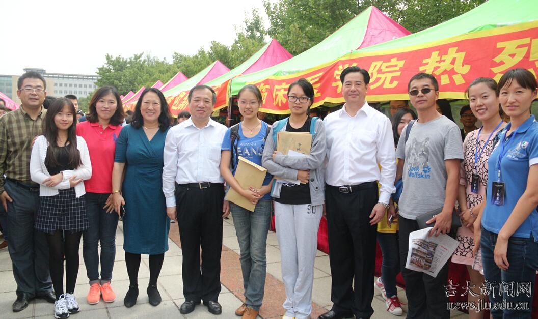 “同学你来自哪里啊?”“这个专业是自己选择和喜欢的么?”“来到长春还适应么,累不累?”“有没有遇到什么困难?”……杨振斌和李元元依次走到各个学院迎新接待站前,热情地和新生及家长攀谈、握手、合影,介绍学校的发展建设情况,了解新生的生源信息、专业选择、发展规划、气候适应情况,掌握新生家长们集中关注的问题,听取他们的建议或意见。