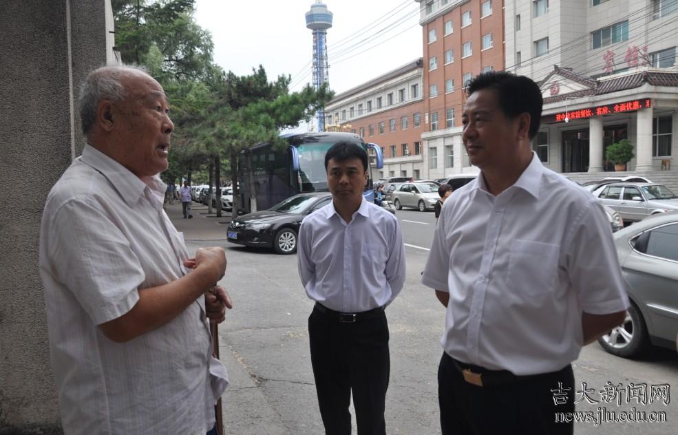走出图书馆,李元元偶遇一位新民校区74岁退休老同志祝贵全,便“闲谈”起来,“身体怎么样呀,退休后还能挣多少钱呀?还有什么问题需要学校解决的?”旁边的工作人员对祝老说,“这是我们的校长”,“谢谢校长的关心,现在还好。”祝贵全激动地回答道。