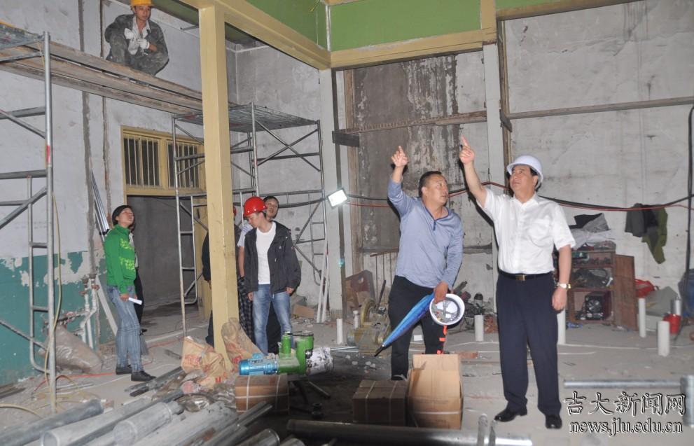 在副校级干部、医学部代理学部长李凡陪同下,李元元来到了正在重新翻修的新民校区图书馆。走进施工现场,李元元仔细察看了施工情况,询问一些细节,对工程队提出了严格的质量要求,特别强调了工程的防火安全性,对图书馆工作人员就使用功能给出了建议,他说:“图书馆要以人为本,要为医学师生提供良好的读书、学习、休闲、讨论交流的环境。”