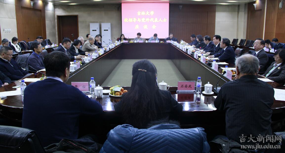 1月16日上午,吉林大学召开党外代表人士座谈会。校领导杨振斌、李元元、王胜今、韩晓峰、蔡莉、刘晓民、吴振武、杜莉,副校级干部李凡,校长助理董德明、刘德斌及28位学校党外代表人士欢聚一堂,共商学校改革发展大计。学校纪委、党办、校办、组织部、宣传部、统战部、发展规划处和人力资源与社会保障处等有关部门负责同志参加了座谈会。座谈会由校党委常务副书记兼副校长王胜今主持。