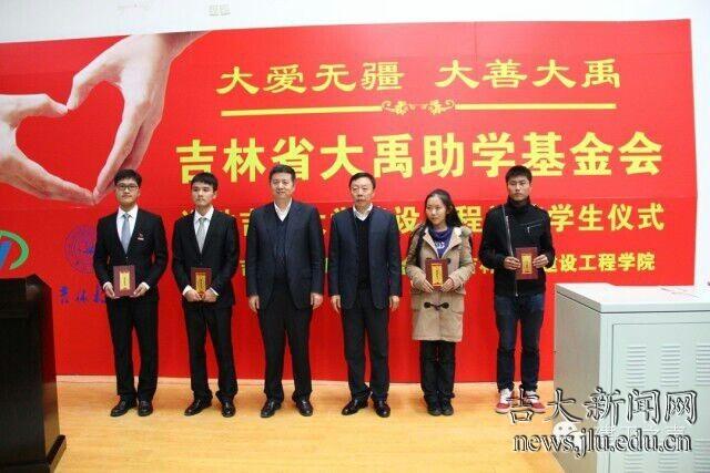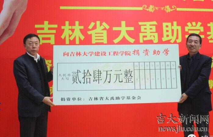 由社会爱心人士捐资设立的吉林省大禹助学基金会向吉林大学建设工程学院捐赠2014年度奖助学金24万元,用于奖助建设工程学院80名优秀和经济困难学生。在11月10日举行的捐赠仪式上,吉林省大禹集团董事长郭全英、建设工程学院院长孙友宏为受资助同学代表颁发证书。