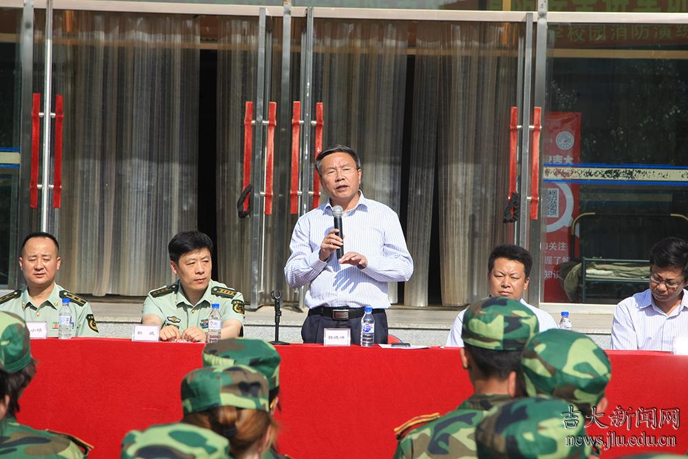 9月8日14时,吉林大学与吉林省消防总队、长春市消防支队联合举行“消防安全进军训” 消防疏散灭火演练和消防知识讲座活动,此次活动分别在中心校区、大学城校园、南湖校区、南岭校区同时展开。吉林大学党委副书记兼副校长韩晓峰、吉林省公安消防总队防火部部长靳威等相关领导参加了中心校区演练活动并作动员讲话,2015级11000名军训学生、500余名后勤集团员工及近百名消防官兵参与此次消防演练活动。