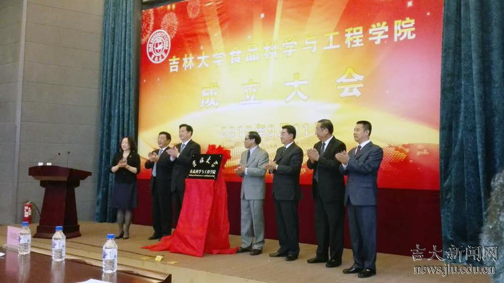 9月11日上午,吉林大学和平校区图书馆2楼报告厅,色彩鲜艳的会议背景墙夺人眼目,学校学科专业结构布局优化调整工作组各成员单位负责人、西区综合办负责人、部分学院代表、相关职能部门负责人以及食品科学与工程学院全体教师和部分学生代表满怀喜悦参加食品科学与工程学院成立大会,共同见证这一神圣而庄严的时刻。在热烈掌声中,校长李元元、党委常务副书记兼副校长王胜今、党委副书记蔡莉、副校长张向东、党委副书记兼纪委书记刘晓民等共同为“食品科学与工程学院”揭牌,标志着食品科学与工程学院正式成立。蔡莉主持了成立大会。