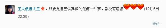 王大傻傻大王:只要是自己认真做的任何一件事,都没有遗憾(12月6日 22:39)