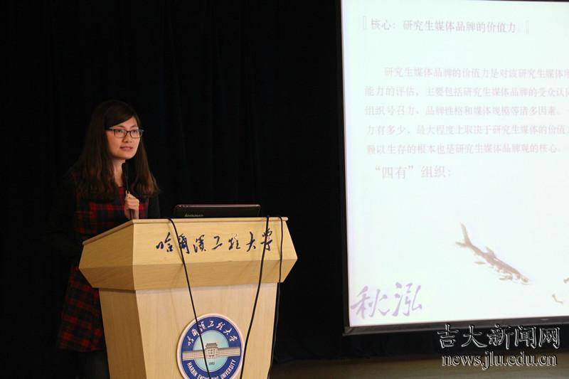 会上,徐思佳作了题为“创新视阈下研究生媒体品牌化战略的理论与实践”的主题发言,发言以《秋泓》杂志的理念与实践为切入点,集中阐述了全媒体时代背景下研究生媒体品牌化战略的道路探索。