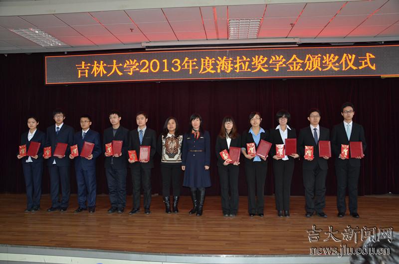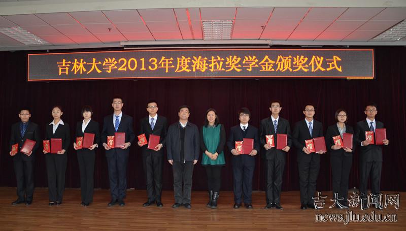 12月11日,吉林大学2013年度“海拉”奖学金颁奖仪式在南岭校区举行。共有20名吉大学子获2013年度“海拉”奖学金,其中本科生10名,硕士研究生10名。