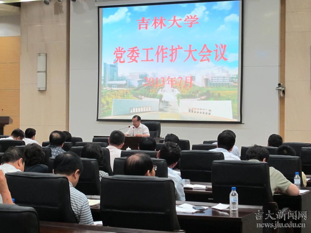 7月4日,吉林大学党委工作(扩大)会议在中心校区举行,会议传达学习了党的群众路线教育实践活动有关会议和讲话精神。吉林大学党委书记陈德文、党委常务副书记兼副校长王胜今、党委副书记兼副校长韩晓峰、党委副书记兼纪委书记刘晓民等校领导及党委职能部门、群团组织主要负责人,各党工委、各基层党委(总支)书记参加会议,相关人员列席会议。会议由王胜今主持。