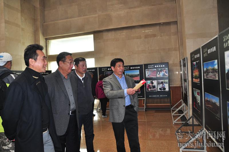 党委副书记兼纪委书记、工会主席、教职工摄影协会名誉会长刘晓民(左二)等参看影展