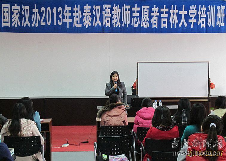 3月27日,国家汉办/孔子学院总部志愿者中心主任郭骄阳到吉林大学国际汉语教师培训基地视察培训工作,并为国家汉办2013年赴泰国汉语教师志愿者学员就国家汉办志愿者项目的相关政策内容作了深入地讲解。