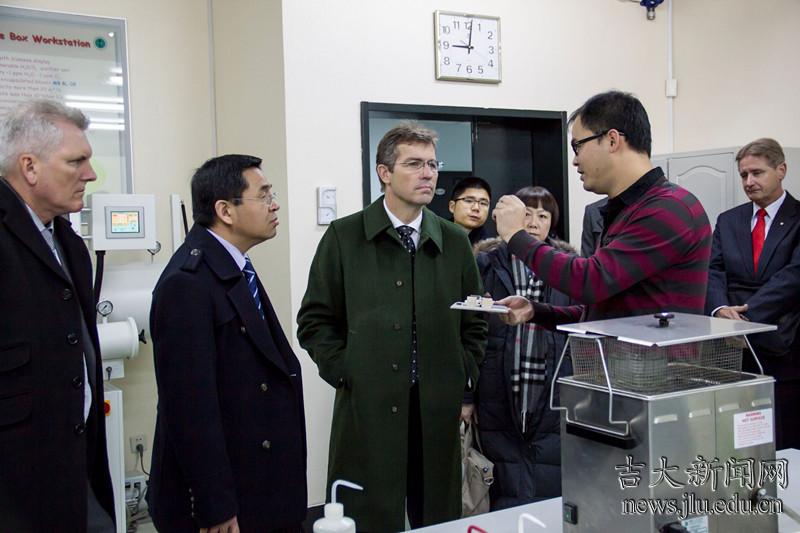 彼得•霍伊一行还参观了吉林大学无机合成与制备化学国家重点实验室和超分子结构与材料国家重点实验室。陪同彼得•霍伊一同访问吉林大学的有昆士兰大学首席运营官毛里斯•麦克那恩先生(Maurice McNarn)、昆士兰大学主管科研副校长逯高清院士、昆士兰大学主管国际事务副校长安德鲁•埃弗里特先生(Mr. Andrew Everett)、UniQuest公司首席执行官迪恩•莫斯博士(Dr. Dean Moss)、中国学系主任,昆士兰大学孔子学院院长陈平、孔子学院项目经理康伯恩先生(Mr. Ben Kelly)。