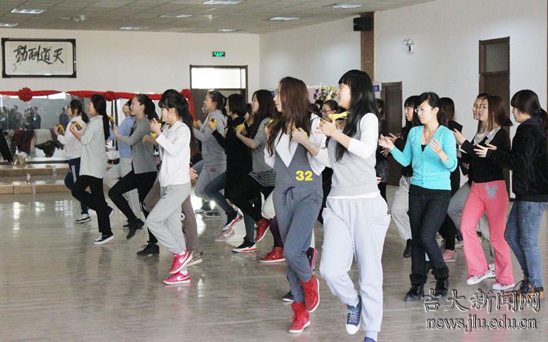 吉林大学中心校区田家炳A座二楼的排练厅,每天都聚集着一群青春靓丽的大学生,她们或随着老师的拍子认真琢磨舞步,或随着音乐的节奏尽情展现舞姿……这幅带给人无限美感的画面是吉林大学备演2013年“五月的鲜花”全国大学生文艺汇演活动的排练现场。时间像流淌的河流,分秒不待,而参演的同学们参与演出的激情却始终没有褪色分毫。