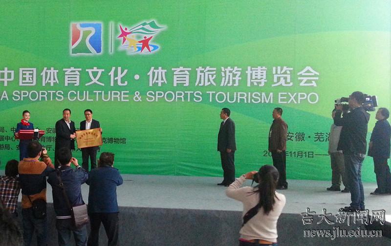 11月3日,在安徽芜湖举行的2013中国体育文化•体育旅游博览会上,吉林大学顺利通过国家体育总局体育文化研究基地评审,获批“国家体育总局体育文化发展中心体育文化研究基地”。国家体育总局体育文化发展中心主任梁晓龙为吉林大学颁授匾牌。这标志着吉大人文社科领域科研平台建设再获新突破,也标志着学校体育科学研究和体育文化研究迈上了新台阶。