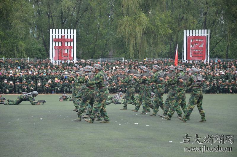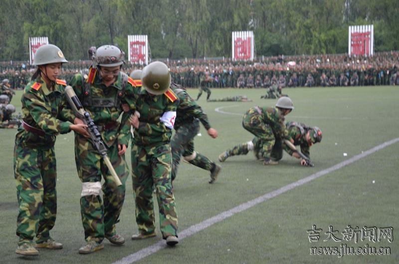 演习中,由军训学生组成的红军连队奋勇冲击,不时有人“中弹负伤”,被战地救护队及时包扎,并运送到野战医院进行救治。在十分钟的激烈对抗中,最终以红军全歼蓝军取得战斗胜利。