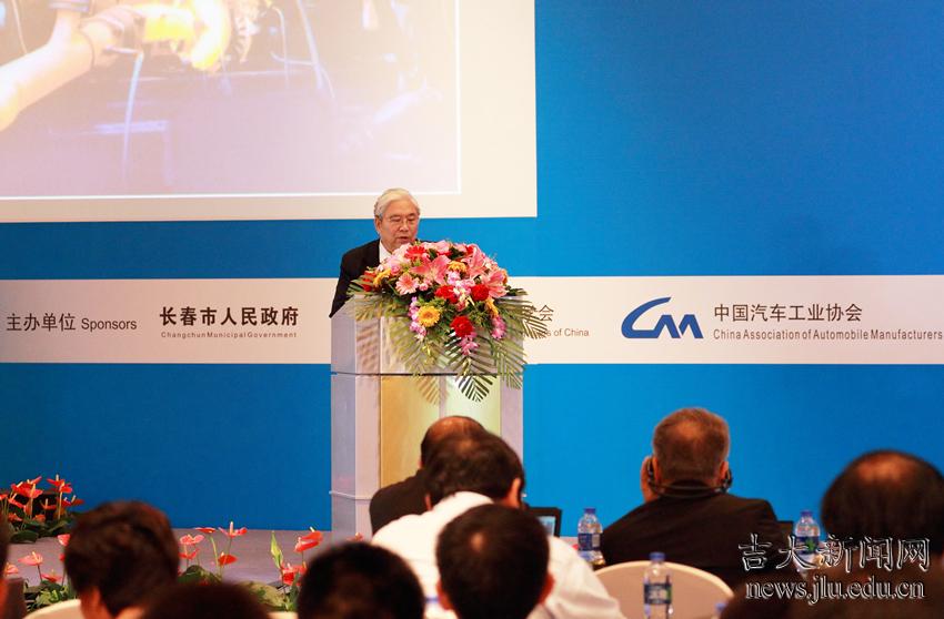 中国汽车工程学会副理事长、吉林大学汽车仿真与控制国家重点实验室主任管欣教授主持了低碳汽车绿色技术专题论坛,中国工程院院士、吉林大学汽车工程学院郭孔辉教授以“汽车低碳化与电动汽车产业的发展”为题做了开场主旨演讲。