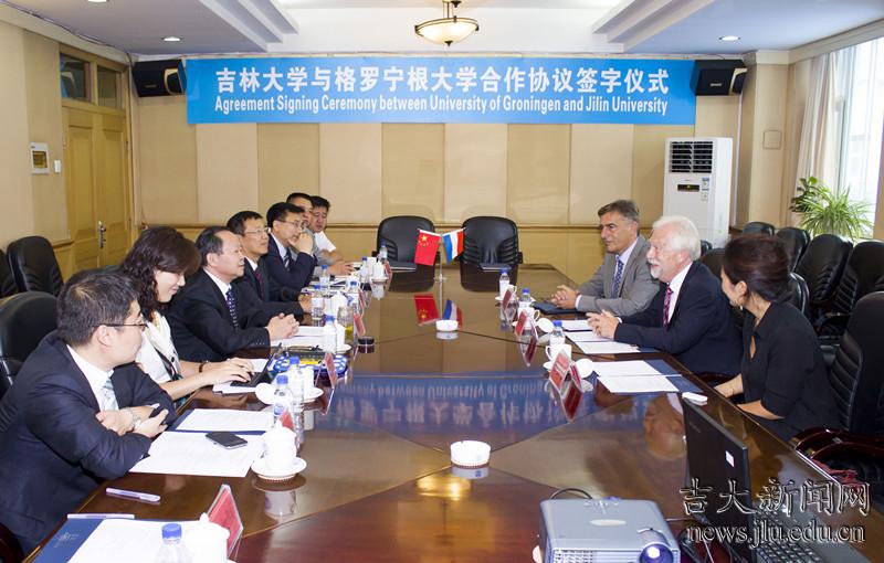8月7日,荷兰格罗宁根大学校长彭浦曼教授(Sibrandes Poppema)一行3人访问吉林大学。校党委书记陈德文会见了代表团,与彭浦曼签署了两校合作协议。副校长陈岗主持了仪式。国际交流与合作处、党委办公室、医学部、化学学院等相关部门负责人陪同会见。