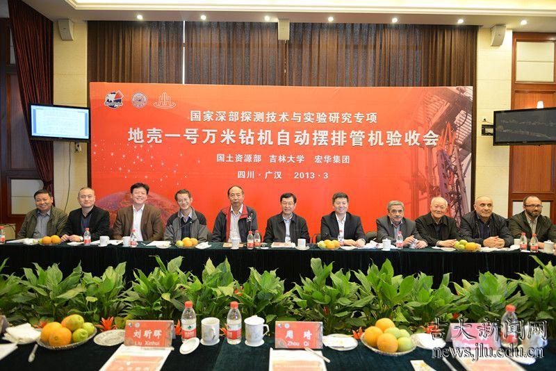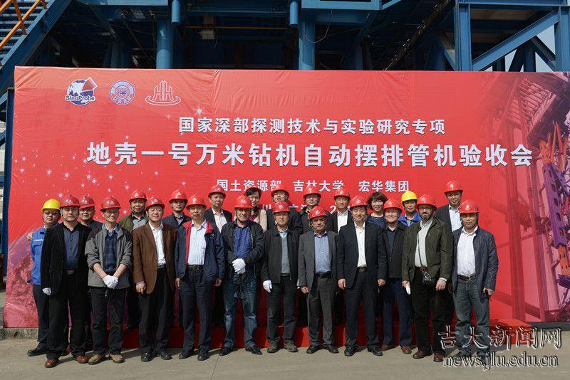 3月27日,深部探测专项(SinoProbe)组织中外同行专家,对吉林大学承担的“深部大陆科学钻探装备研制”课题的阶段性研究成果“地壳一号”万米钻机自动摆排管机进行了现场验收。