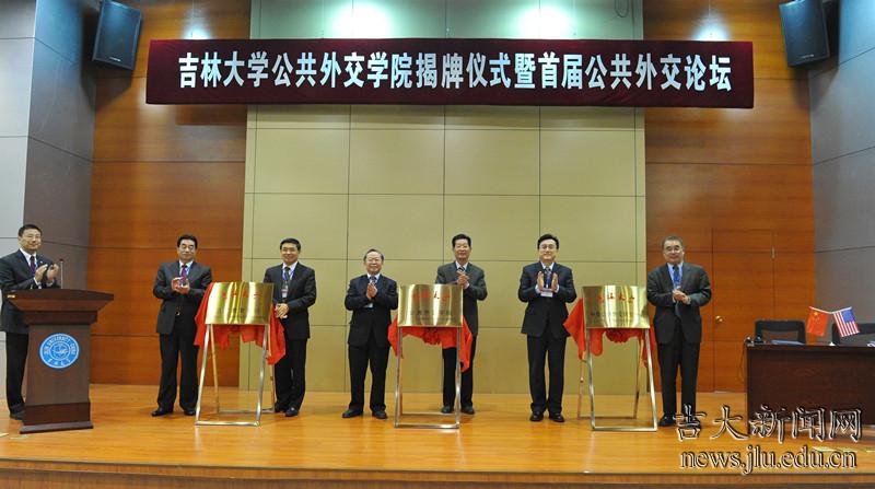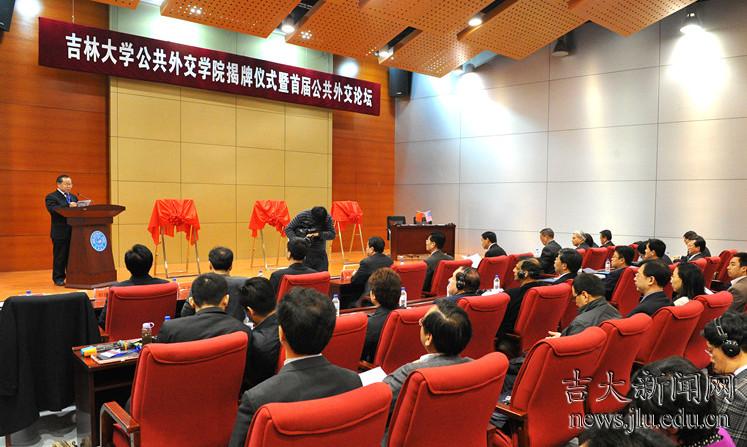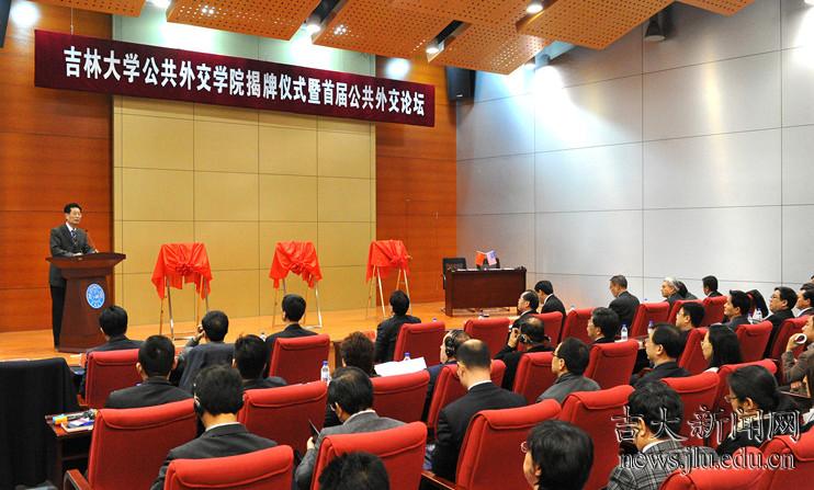 4月27-28日,吉林大学公共外交学院、国际教育学院和中美公共外交研究中心揭牌仪式暨吉林大学首届公共外交论坛“跨文化交流与公共外交”在吉林大学国际学术大讲堂举行。外交部前副部长、前中国驻俄罗斯特命全权大使、外交部公共外交咨询委员会委员刘古昌先生,世界知识出版社总编辑范建民先生,著名国际关系理论家、北京大学王逸舟教授,澳大利亚昆士兰大学副校长逯高清院士和美利坚大学亚洲研究中心主任赵全胜教授、纽约黄与黄律师事务所总裁黄晓夫律师、韩国成均馆大学文学院院长全广镇教授等应邀出席了揭牌仪式和论坛。吉林大学校务委员会主任陈德文教授、校务委员会常务副主任兼副校长王胜今教授和副校长陈岗教授出席了揭牌仪式和论坛开幕式。