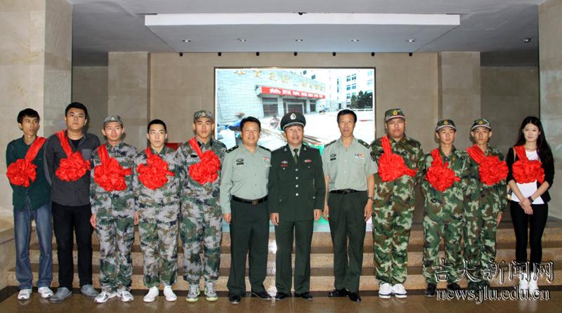 9月4日,吉林大学为光荣入伍的同学举行了欢送仪式。据悉,今年吉大共有18名学子参军,其中有9名同学因在外地直接从本地应征入伍。校党委副书记兼副校长韩晓峰及党委武装部、军事教研室主要负责人参加了欢送仪式。