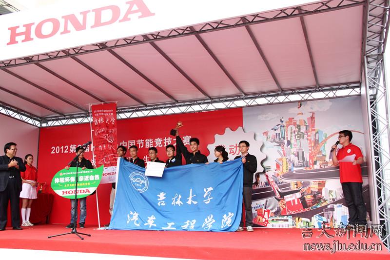 第六届中国节能竞技大赛于近日在广州国际赛车场举行,由汽车工程学院魏乐老师任领队,汽车系李静老师担任指导教师,徐潘龙,张立峰等七名本科生组成的 “吉大汽车——肯赛(conception)车队”在决赛中以1042.303km/L的成绩在大学组62支参赛队伍中勇夺桂冠,刷新了吉林大学参加此项赛事的最好成绩。