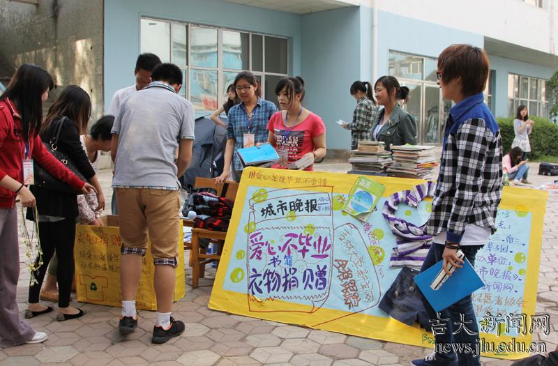 近日,由吉大新闻网策划并联合《城市晚报》、吉大阳光志愿者协会、信•望•爱协会共同举办的“爱心不毕业”毕业生衣物捐赠活动使中心校区再次涌动爱心潮。
