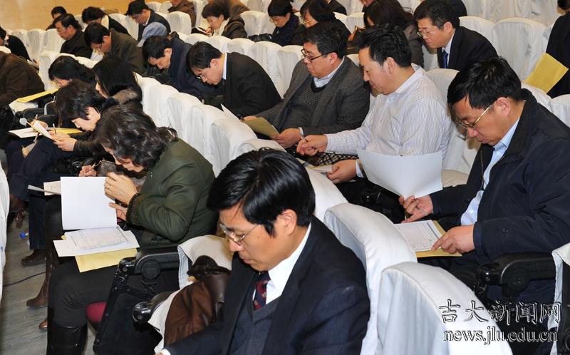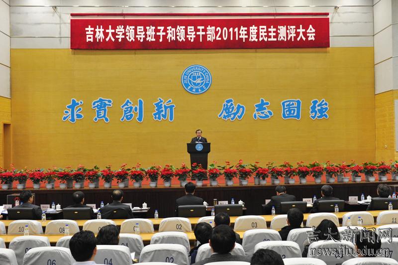 3月16日,吉林大学召开校级领导班子和领导干部2011年度民主测评大会,同时通过网络直播向全校师生员工汇报工作,并接受现场与会人员民主测评。会议由校党委书记陈德文主持。