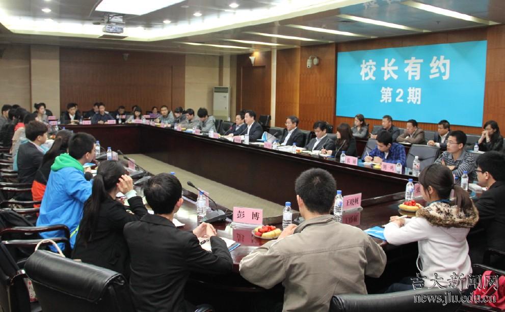 李元元在座谈中表示,吉林大学的发展在一定程度上既取决于学校领导班子有没有发展的决心、信心和智慧,更取决于广大学生对学校的认同以及对学校一定阶段发展目标和任务的广泛认识。“校长有约”就是希望能够为同学们提供一个发表意见的平台,希望学生代表们知无不言、言无不尽,为把吉大建设得更加美好而积极献计献策。