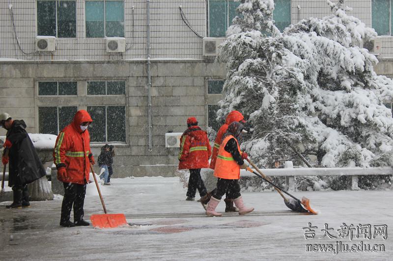 面对突然来袭的雨雪天气,吉林大学及时启动相关预案,后勤集团、保卫处、爱卫会等部门及时采取措施,排除安全隐患,应对寒冬降临。