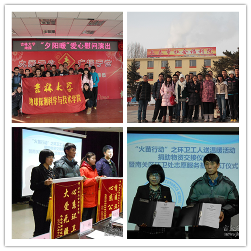 经济学院团委牵头组织了长春市首次跨校区大型志愿服务“火苗行动”。此次活动吸引了来自长春理工大学、东北师范大学等高校的45个志愿社团的参与。“火苗行动”之“环卫工人送温暖”活动组织志愿者走出校园,参与环卫服务,并联系企业为环卫工人筹集善款,购买过冬衣物。活动旨在号召师生学习贯彻党的十八大精神,关注民生,关怀弱者,将构建和谐社会的主旋律与大学生志愿服务相结合,提高志愿服务质量。