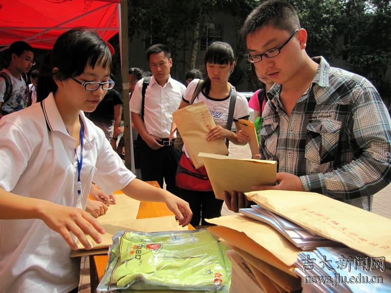 在吉林大学基础园区报到处,高中生们领取了活动手册、公寓钥匙、饭卡、活动衫、帽子等基本备品。