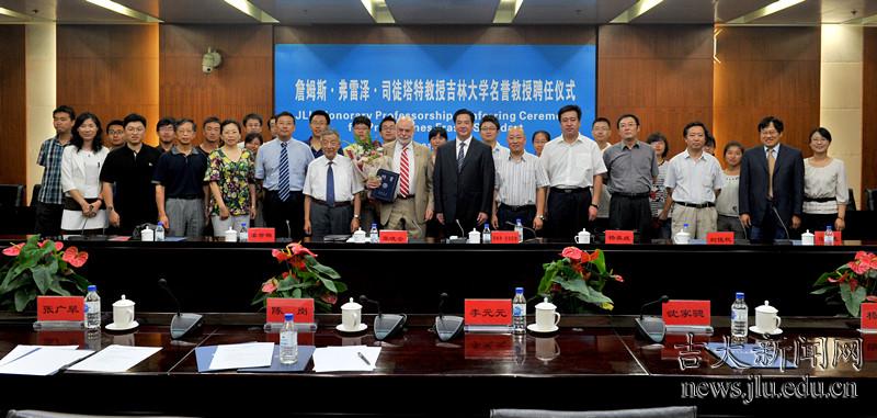 8月7日,詹姆斯•弗雷泽•司徒塔特(James Fraser Stoddart)教授吉林大学名誉教授聘任仪式在吉林大学中心校区举行。吉林大学校长李元元,中国科学院院士、吉林大学教授沈家骢出席聘任仪式。仪式由吉林大学副校长陈岗主持。