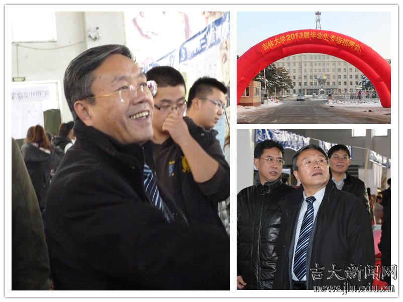 11月21日,由吉林大学毕业生就业指导中心主办,应用技术学院承办的吉林大学2013届毕业生专场招聘会在南湖校区成功举行。吉林大学党委副书记兼副校长韩晓峰和毕业生就业指导中心主任赵刚敏来到现场视察招聘会情况,并与用人单位及毕业生亲切交谈。