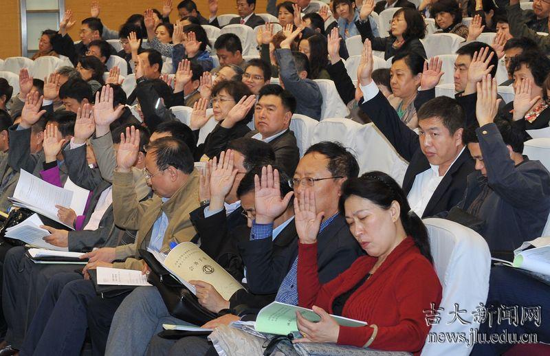 会上,全体代表表决通过了关于《吉林大学教职工代表大会章程(修订稿)》、《吉林大学第六届教职工代表大会暨第十七届工会委员会工作报告》、《吉林大学第十七届工会委员会财务工作报告》及《吉林大学第十七届工会经费审查委员会工作报告》的决议。