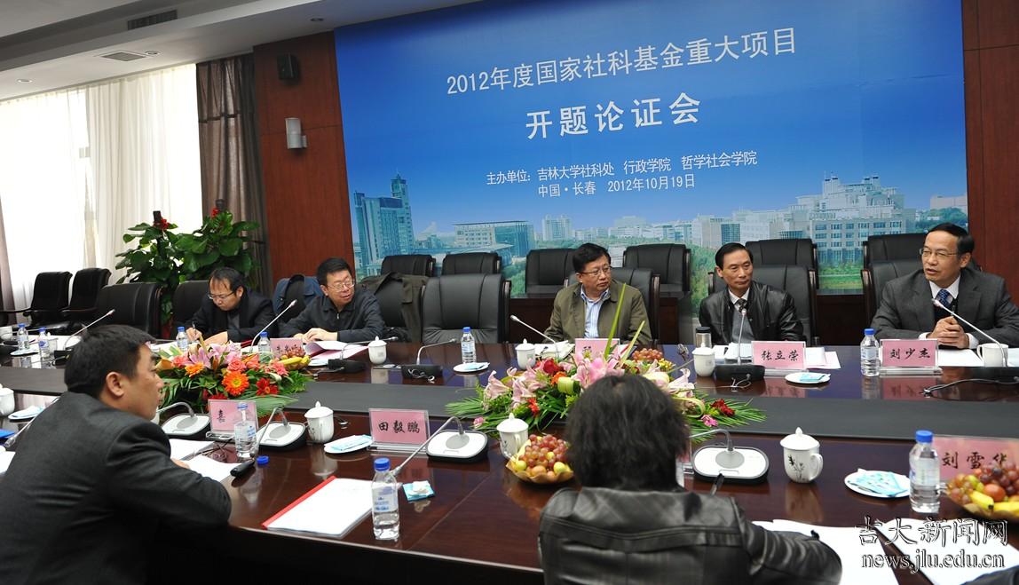 10月19日,吉林大学行政学院麻宝斌教授作为首席专家承担的2012年度国家社会科学基金重大项目“我国社会公平正义现状测评与改善对策”、哲学社会学院崔月琴教授作为首席专家承担的2012年度国家社会科学基金重大项目“社会组织管理模式创新和推进路径研究”开题论证会在中心校区举行。吉林大学副校长吴振武出席了开幕式并致辞。行政学院、哲学社会学院及各项目子课题负责人、相关学院的师生共30余人参加了论证会。