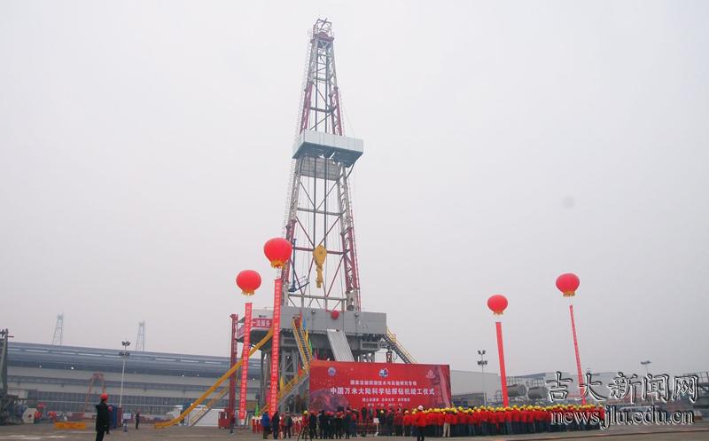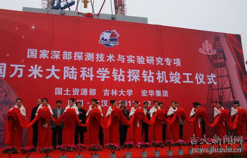 12月20日,由吉林大学和宏华集团有限公司联合研发的中国首台万米大陆科学钻探钻机竣工仪式在四川广汉隆重举行。中国科学院院士、国土资源部高咨中心专家李廷栋,国家深部探测与实验研究专项首席科学家、中国地质科学院副院长董树文,国土资源部大陆动力学重点实验室主任杨经绥,汶川地震断裂带科学钻探总指挥张伟,SinoProbe-09-05项目负责人、吉林大学建设工程学院院长孙友宏等国内知名地质和钻探专家,广汉市委书记毛君甫、宏华集团有限公司总裁张弭,深部探测与实验研究专项办公室和项目组主要研究人员等参加仪式。
