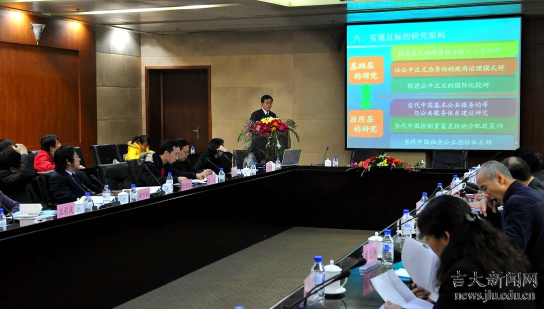 在学术研究上,项目充分发挥吉林大学多学科优势,以吉林大学社会公正与政府治理中心为平台,以“985”工程哲学社会科学创新基地为载体,根据国家重大战略需求,紧紧围绕“社会主义初级阶段分配正义原则”“促进公平正义的国际比较”“公平正义为导向的政府治理模式”“公共服务均等化与服务型政府建设”“控制贫富差距的分配政策”“社会公平正义的指标体系研究”七个研究方向开展研究工作。立项一年多来,项目研究产生了一批标志性的研究成果,在《中国社会科学》、《新华文摘》、《政治学研究》等重要刊物上发表了一系列具有高影响力的学术论文。其中,项目首席专家周光辉教授独立撰写的项目阶段性成果“当代中国决策体制的形成与变革”一文,在《中国社会科学》2011年第3期发表,并在《中国社会科学》英文版2012年第3期转发,列入《中国经济学人》英文版2012年转发计划。