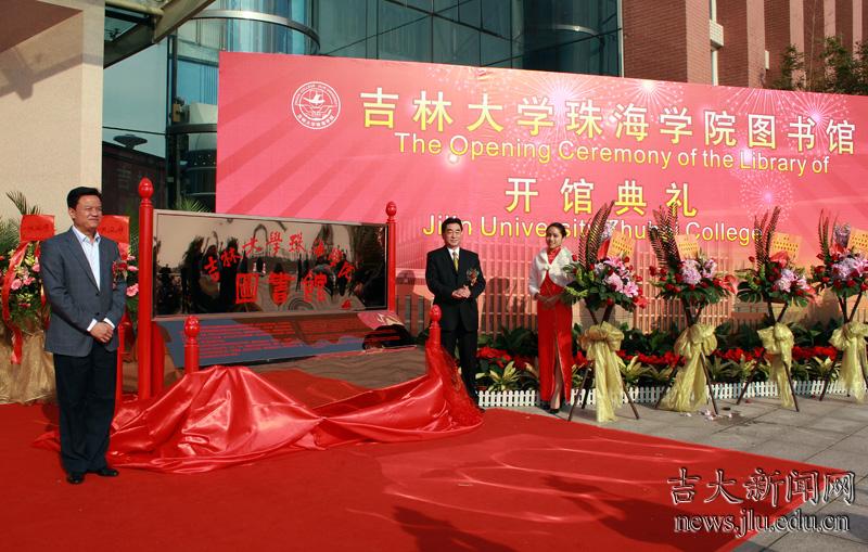 12月13日,吉林大学珠海学院举行图书馆开馆典礼,校党委常务副书记兼副校长王胜今,徐如人、沈家聪、倪嘉缵、严纯华、郑兰荪等院士,吉大哲学社会科学资深教授刘中树,吉大无机合成与制备化学国家重点实验室珠海分实验室主任裘式纶出席开馆典礼。我国著名国学大师饶宗颐为图书馆题写了馆名,珠海市副市长王庆利和王胜今一起为图书馆揭牌。