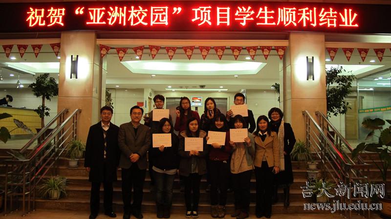 1月10日,“亚洲校园”项目首批学生结业典礼在吉大举行。来自日本冈山大学的4名学生和韩国成均馆大学的4名学生,吉林大学国际合作与交流处、国际教育学院、国际语言学院等单位的负责人,校内师生代表参加了结业典礼。