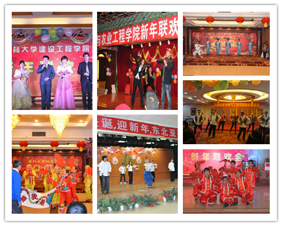 公共卫生学院研究生元旦晚会的开场舞《阿拉伯之夜》,以极具异域风情的表演炒热了全场的气氛,接下来的节目更是精彩绝伦、夺人眼球。器乐合奏悠扬婉转,诙谐的小品令人捧腹不已,街舞表演更是时尚动感。计算机科学与技术学院的新年联欢会同样独具匠心。开场舞《好收成》富有民族气息和新春的感染力,小合唱《走进新时代》气势宏大、振奋人心。生物与农业工程学院的2013年迎新联欢会上,一首温馨的老歌《九九艳阳天》拉开了晚会帷幕。由工程仿生教育部重点实验室的反串音乐小品《仿生Style》活泼可爱,动感十足;青年教师郭丽等的打油诗悉数了学院一年的成就;博士生导师贾洪雷教授等带来的京剧《红灯记》、农业工程系全体教师的大合唱《精忠报国》和生物工程系主任、博士生导师赵寿经教授的《我爱你中国》字正腔圆,气势磅礴;机电所的小品《旅行团》再次令全场捧腹大笑、掌声连连;小白杨组合的戏说评书《岳飞传》,用丰富的艺术形式和连贯的舞台效果,赢得台下阵阵掌声。