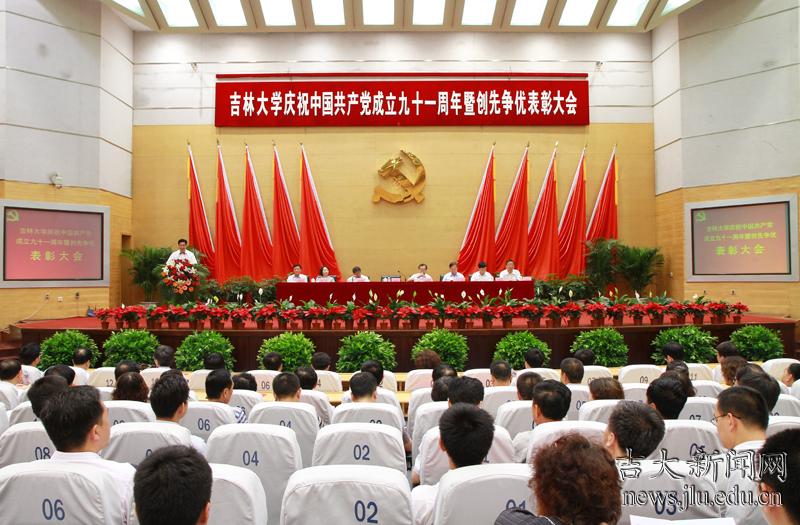 6月29日,吉林大学隆重召开庆祝中国共产党成立91周年暨创先争优表彰大会。校领导陈德文、李元元、赵继、韩晓峰、张晓林、蔡莉、刘晓民、吴振武,校党委委员、纪委委员,校长助理、纪委常务副书记、研究生院常务副院长,基层党委(总支、直属支部)书记、副书记;教学、科研单位主要负责人代表,机关党政职能部门、群团组织、党校办公室主要负责人,教职工及学生党员代表、离退休党员代表、党外人士代表、入党积极分子代表,受表彰单位和个人代表参加了大会。校长李元元主持大会。