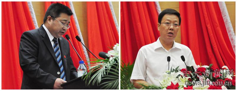 先进基层党组织获奖单位代表、商学院党委书记蔡志刚,优秀党员代表、汽车工程学院党委副书记刘炳恩分别在会上发言。