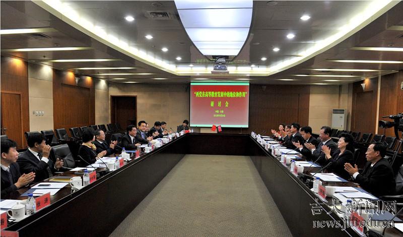 陈德文在会上系统地诠释了“党委领导下的校长负责制”的实质和内涵,结合吉林大学党委的具体工作介绍了中国共产党在高等院校中所承担的各项职能,并着重强调了“学术自由、教授治学”和“民主办学、民主监督”两项原则,总结了中国共产党在高等教育发展中的重要地位和作用。金泰熙在发言中从五个方面论述了在高等教育发展中“坚持党的领导”的重要性,归纳了具有朝鲜特色的、朝鲜劳动党领导下的高等教育机制的特点。