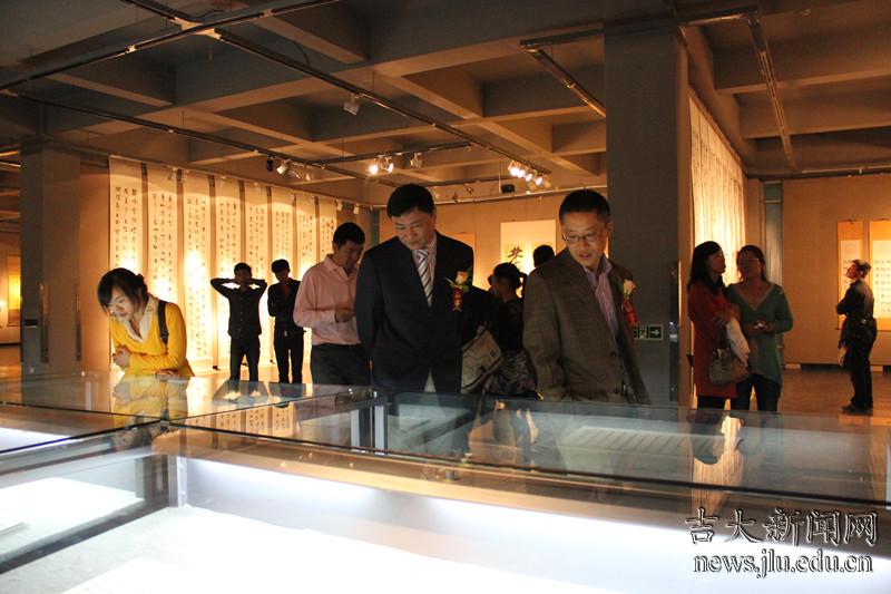 开幕仪式后,各位嘉宾共同参观了张金梁书法展。吉林大学古籍研究所丛文俊教授、校党委宣传部部长巩英春出席开幕式。(于姗姗)
