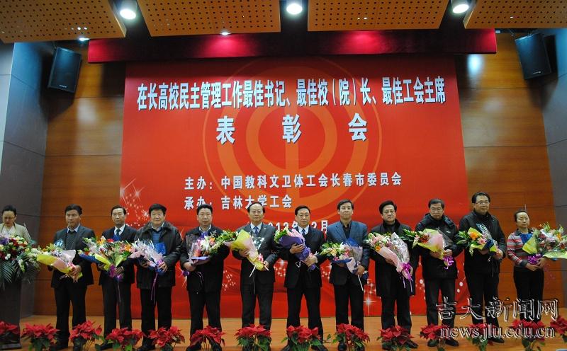 12月6日,在长高校民主管理最佳书记、最佳校(院)长、最佳工会主席表彰会在吉林大学召开。会议由中国教科文卫体工会长春市委员会主办,吉林大学工会承办。长春市委常委、长春市总工会主席袁玉树,长春市总工会副主席董珊梅,吉林省教科文卫体工会主席邓志远,吉林大学党委副书记、纪委书记、工会主席刘晓民,吉林大学校工会以及长春市各高校相关领导出席了本次表彰会。会议由长春市教科文卫体工会主席康平主持。