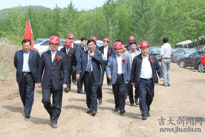 庆典仪式上,吉林大学地学部学部长、建设工程学院院长孙友宏教授代表吉科—1井项目实施单位致辞,并宣布吉林大学科学钻探第一井开钻,与杨家杖子开发区区长郑子清共同启动了钻机按钮。