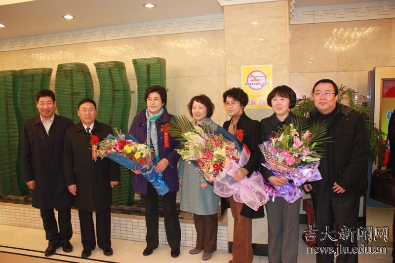 带着全体学生、教工对国家建设发展的殷切期望和美好愿望,3月2日上午,吉林大学参加第十一届全国人民代表大会第五次会议的人大代表、中日联谊医院王江滨和经济学院杜婕飞离长春奔赴北京。吉林大学党委副书记蔡莉和组织部部长冯正玉、统战部部长全华以及相关单位负责人来到清华宾馆为代表们送行,并在现场与王江滨、杜婕,吉林大学资深教授、吉林省高级人民法院院长张文显,吉林省人大常委会副主任车秀兰合影。