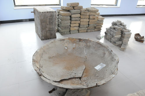 大安是吉林省西北部的一个县级市,地处月亮泡与查干湖之间,东边是松花江西源的嫩江。大安酿酒总厂2006年6月在进行老厂房改造时,挖出了两件大铁锅、两件小铁锅、一件铁承接器、一件大瓷瓮和大约三百件炉灶石块。
