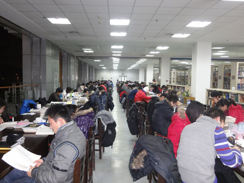 图书馆是学习的好去处。八点开馆,同学们便开始陆续进入。十点闭馆,同学们才收拾东西离开。期间座无虚席,不少同学甚至站着看书。